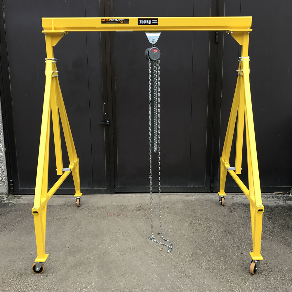 La gru a portale, detta anche a cavalletto, è davvero molto pratica e può tornare utile in diverse situazioni. Innanzitutto, questo tipo di strumento per il sollevamento dei pesi è facilmente trasportabile grazie a questa sua struttura. Un altro fattore che le conferisce praticità, è la possibilità di utilizzare diversi paranchi: si possono agganciare alla struttura paranchi elettrici o anche manuale che tirano su anche grandi pesi. Una gru a portale è perfetta dove è troppo complicato o impossibile montare una classica gru fissa che è molto ingombrante.